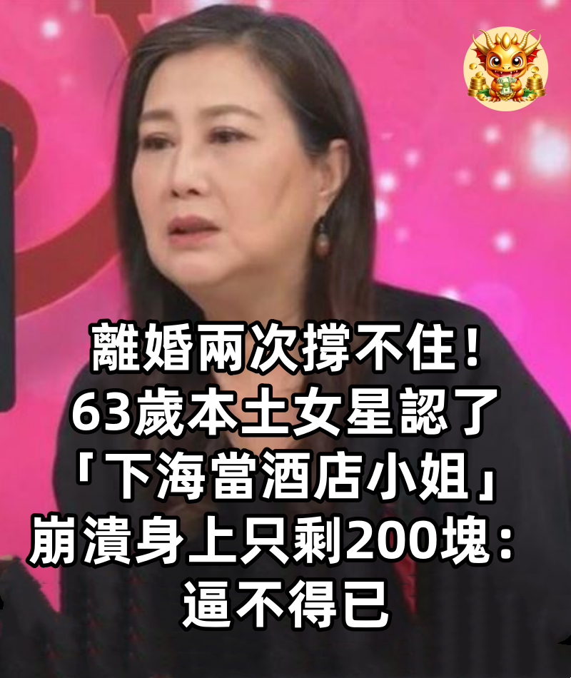 離婚兩次撐不住!63歲本土女星認了「下海當酒店小姐」崩潰「身上只剩200塊」:逼不得已