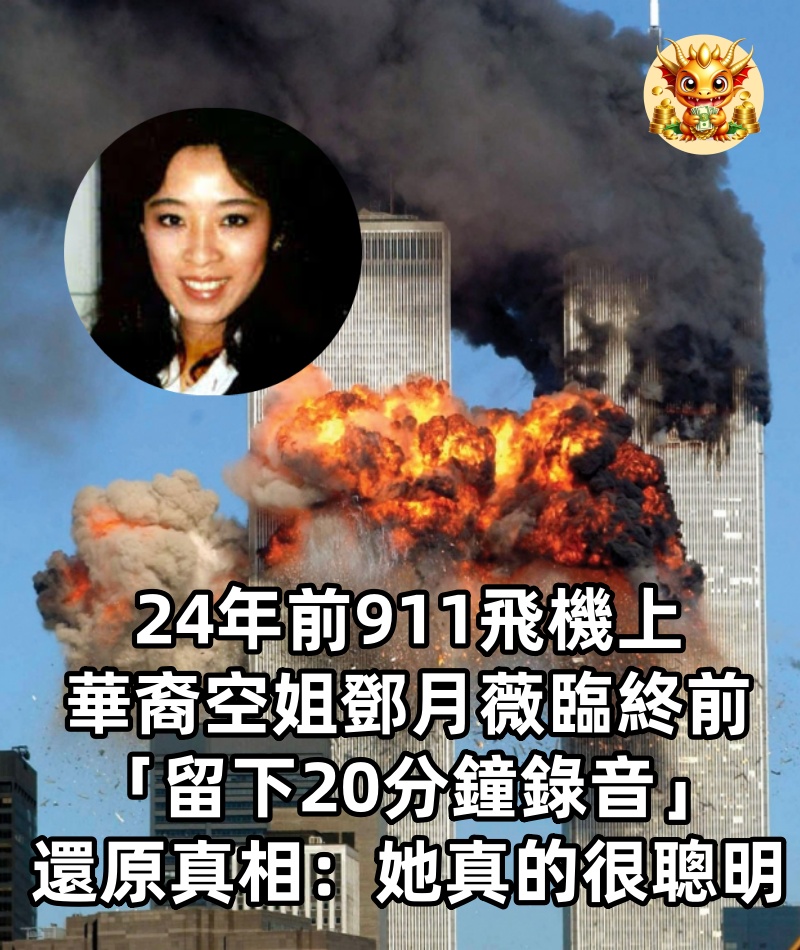 24年前911飛機上,華裔空姐鄧月薇臨終前「留下20分鐘錄音」還原真相:她真的很聰明