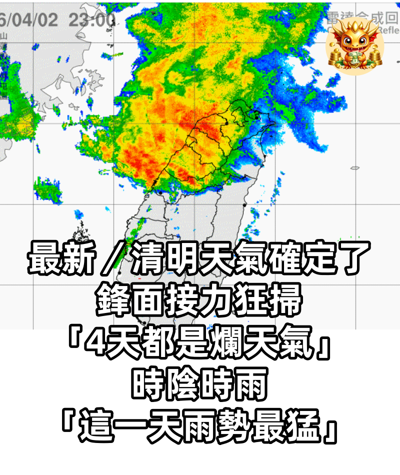 最新/清明天氣確定了!鋒面接力狂掃「4天都是爛天氣」 時陰時雨「這一天雨勢最猛」