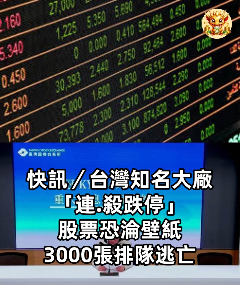 快訊/台灣知名大廠「連.殺跌停」! 股票恐淪壁紙,3000張排隊逃亡