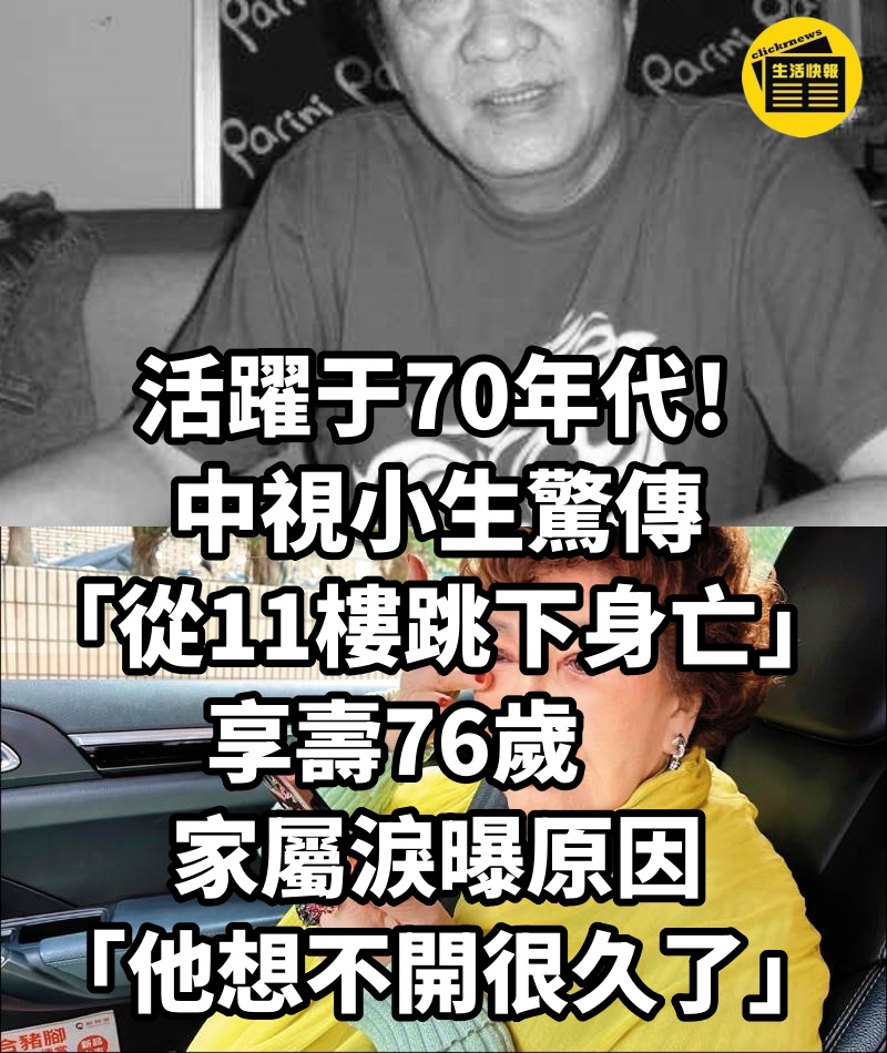 活躍于70年代!中視小生驚傳「從11樓跳下身亡」享壽76歲 家屬淚曝原因「他想不開很久了」
