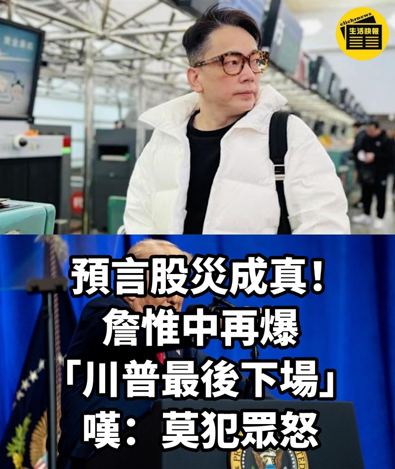 受到美國總統川普「全球對等關稅」政策震盪,台股也遭受波及、一片綠油油,許多投資人哀聲四起、紛紛慘賠。而知名命理師詹惟中、去年預言成真,引起大批網友熱烈議論!近日,他又大膽預測川普下場,並呼籲大眾不要受到「二次傷害」,話題一出...不少網友都相當認同。