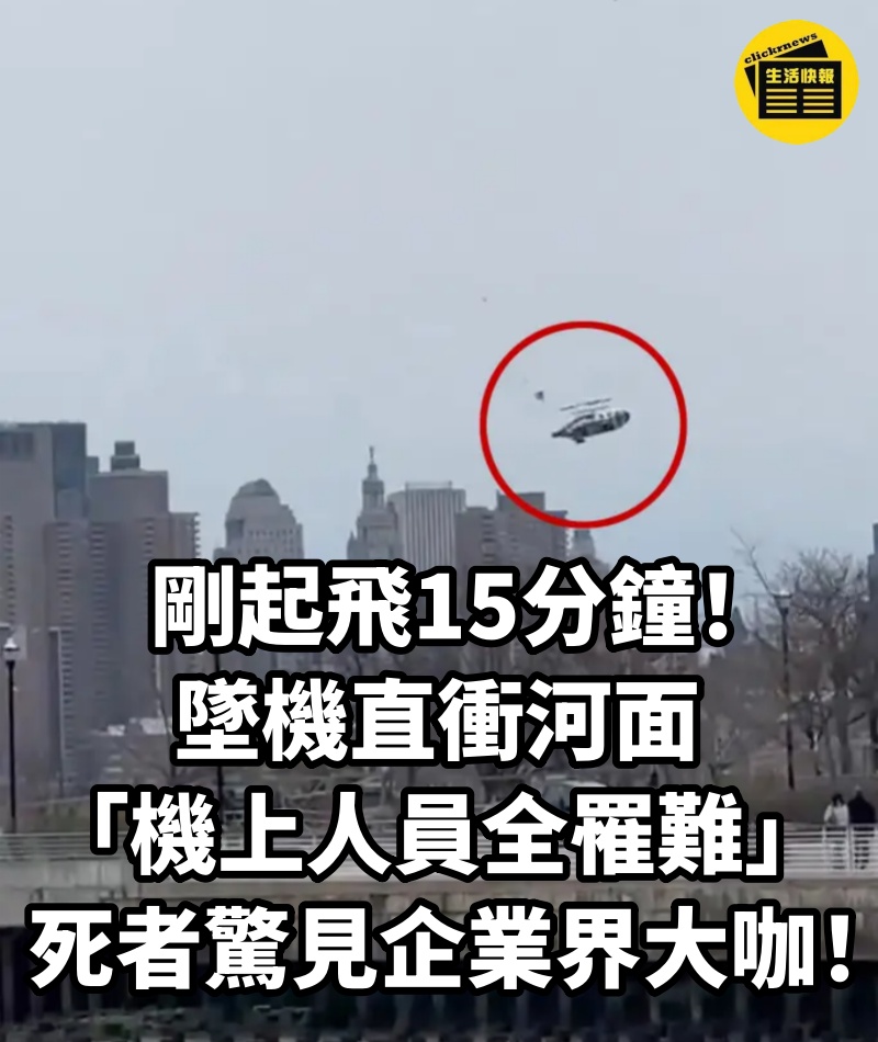 又傳墜機事故!一架載有西班牙籍觀光客的直升機,於10日在紐約哈德遜河域發生重大空難,造成機上6人全數罹難,其中還包含3名孩童。