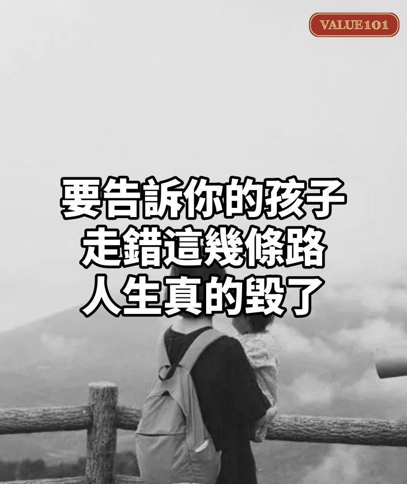 既然如此,就需要做到「防微杜漸」。要告訴你的孩子:走錯這幾條路,人生就毀了。