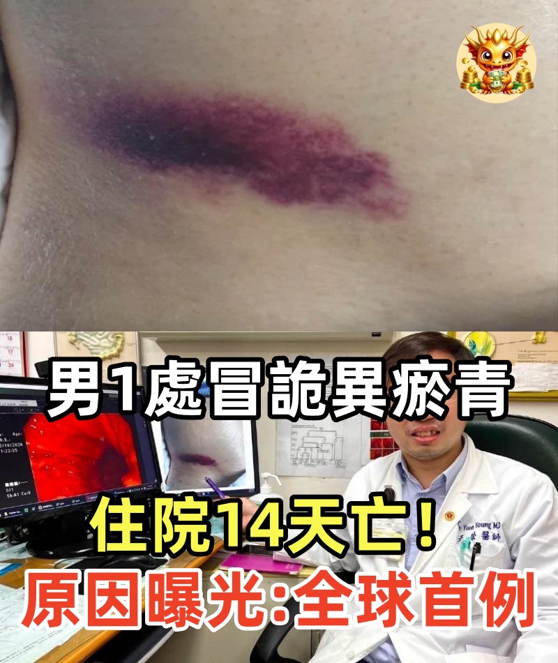 屏東男「1處冒詭異瘀青」住院14天亡!原因曝光成「全球首例」