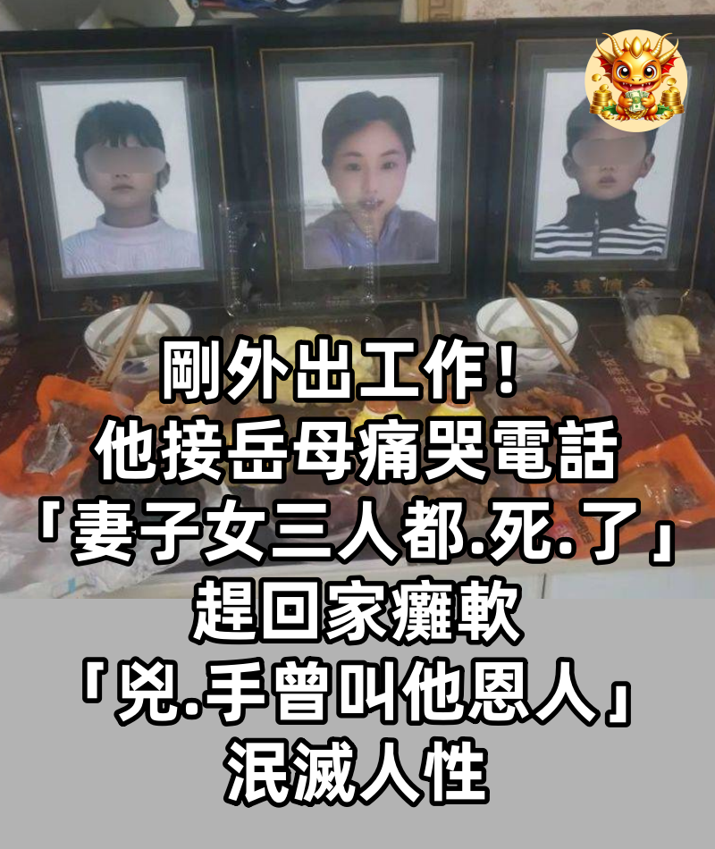剛外出工作!他接岳母痛哭電話「妻子女三人都.死.了」趕回家癱軟「兇.手曾叫他恩人」泯滅人性