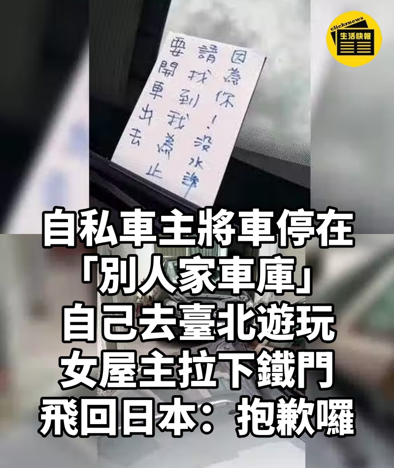 自私車主將車停在「別人家車庫」自己去臺北遊玩,女屋主「拉下鐵門」飛回日本:抱歉囉~