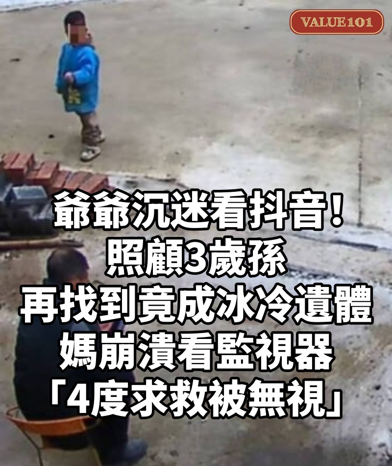 爺爺沉迷看抖音!照顧3歲孫「再找到竟成冰冷遺體」 媽崩潰看監視器「4度求救被無視」