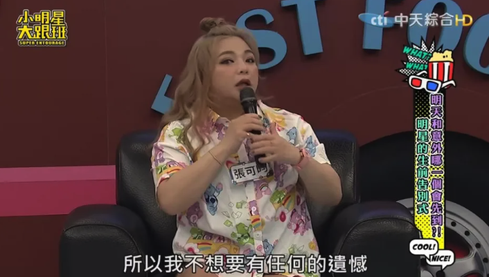 先前,節目《小明星大跟班》錄製「生前告別式」主題,有不少藝人都在節目上大談關於「身後事」的規劃。而經歷過一段婚姻、育有一名女兒的小甜甜(張可昀)也表示,自己平時確實有每天寫遺書的習慣,並將內容告知摯友,希望能好好把事情交代完備。