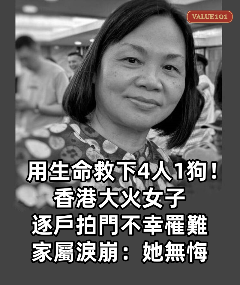 用生命救下4人1狗!香港大火女子逐戶拍門不幸罹難 家屬淚崩:她無悔