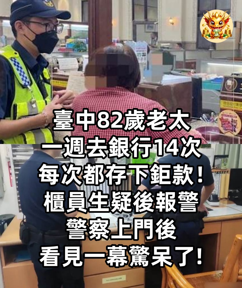 臺中82歲老太一週去銀行14次,每次都存下鉅款!櫃員生疑後報警,警察上門後,看見一幕驚呆了