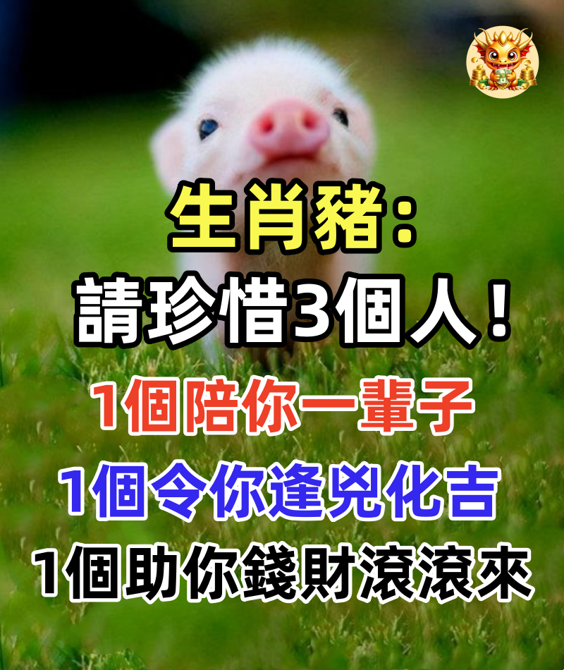 生肖豬:請珍惜3個人!1個陪你一輩子「1個令你逢兇化吉」1個助你錢財滾滾來