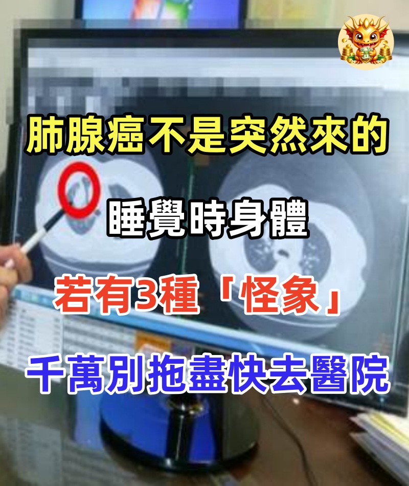 肺腺癌不是突然來的!睡覺時身體若有3種「怪象」,千萬別拖盡快去醫院,再不注意就晚了!