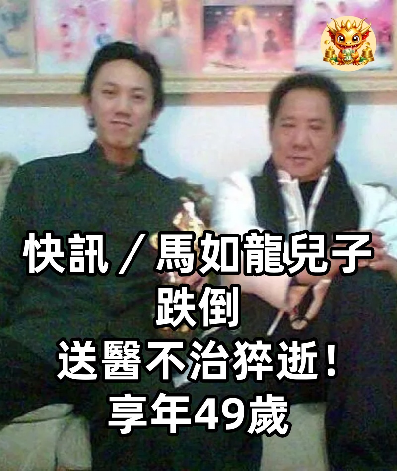 快訊/馬如龍兒子跌倒,送醫不治猝逝!享年49歲