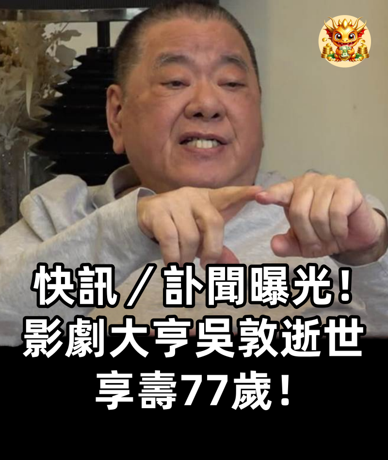 快訊/訃聞曝光!影劇大亨吳敦逝世,享壽77歲!