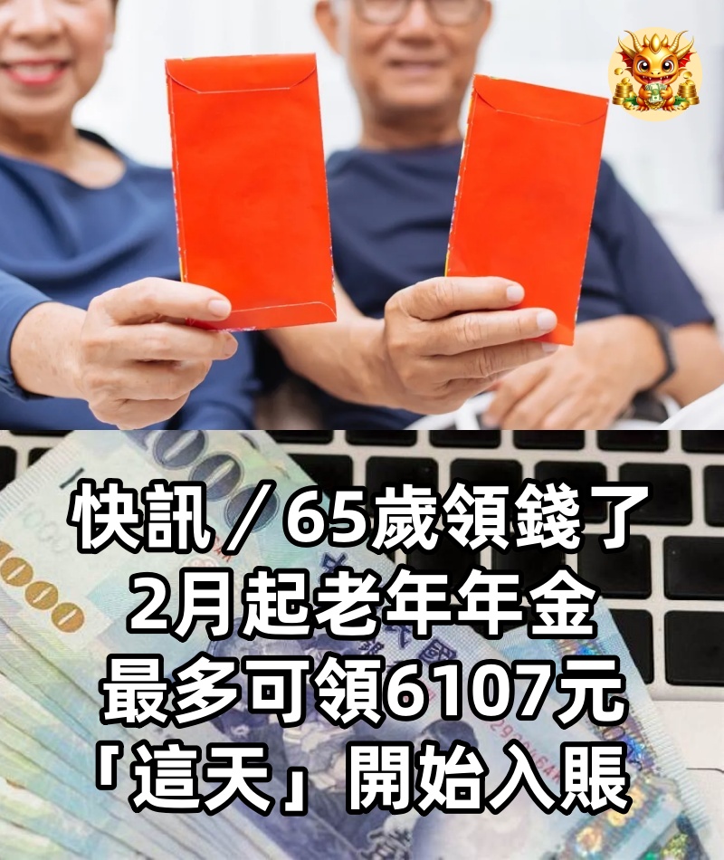 快訊/65歲領錢了!!! 2月起老年年金最多可領6107元,「這天」開始入賬