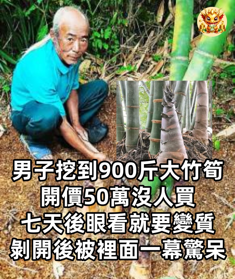 男子挖到900斤大竹筍,開價50萬沒人買,七天後眼看就要變質,剝開後被裡面一幕驚呆