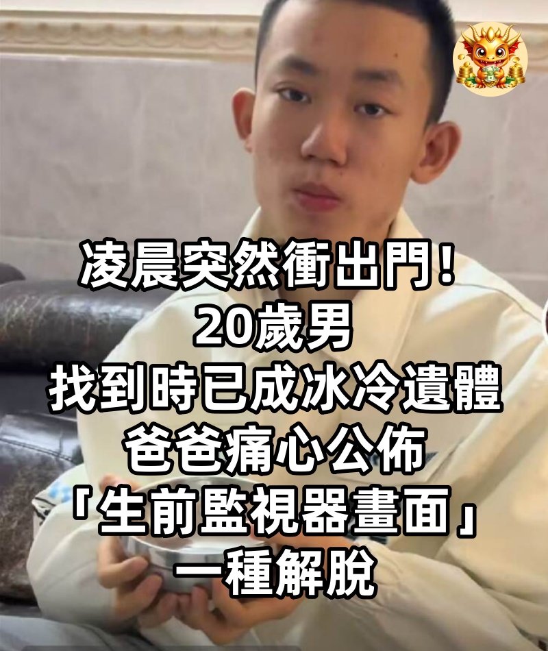 凌晨突然衝出門!20歲男「找到時已成冰冷遺體」爸爸痛心公佈「生前監視器畫面」:一種解脫