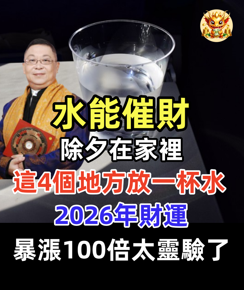 水能催財!除夕在家裡「這4個地方」放一杯水,2026年財運「暴漲100倍」太靈驗了!