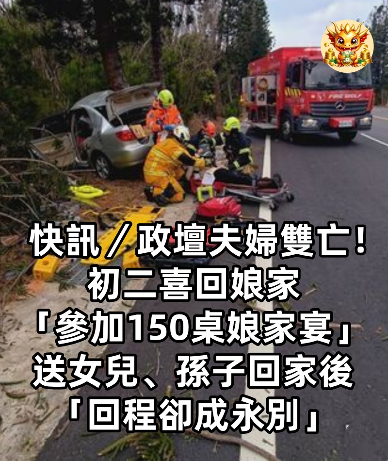 快訊/政壇夫婦雙亡!初二喜回娘家「參加150桌娘家宴」 送女兒、孫子回家後「回程卻成永別」