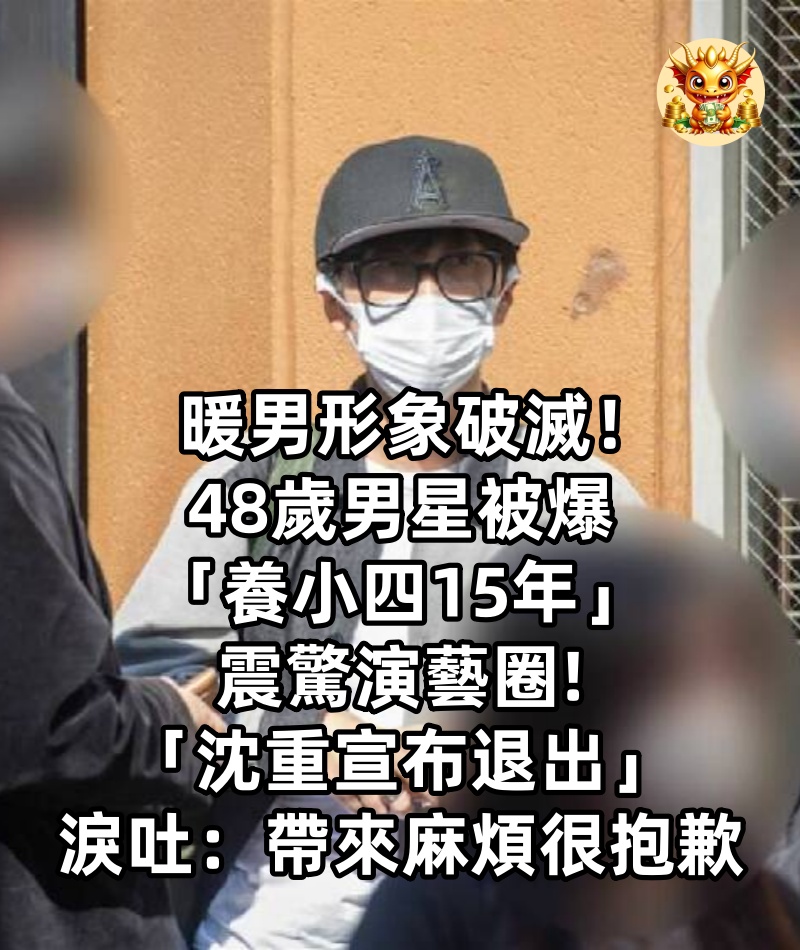 暖男形象破滅!48歲男星被爆「養小四15年」震驚演藝圈 「沈重宣布退出」淚吐:帶來麻煩很抱歉
