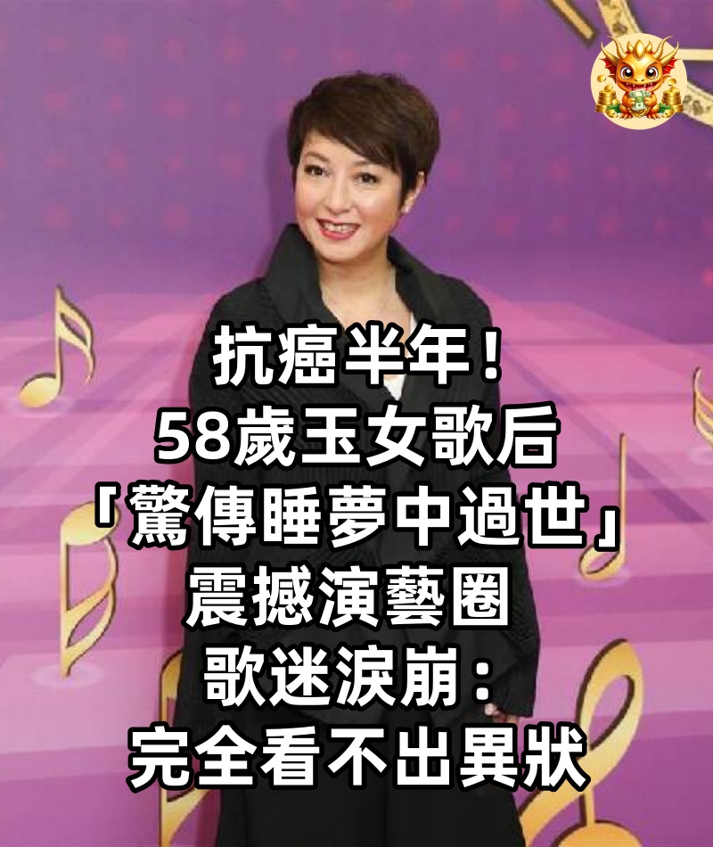 抗癌半年!58歲玉女歌后「驚傳睡夢中過世」震撼演藝圈 歌迷淚崩:完全看不出異狀