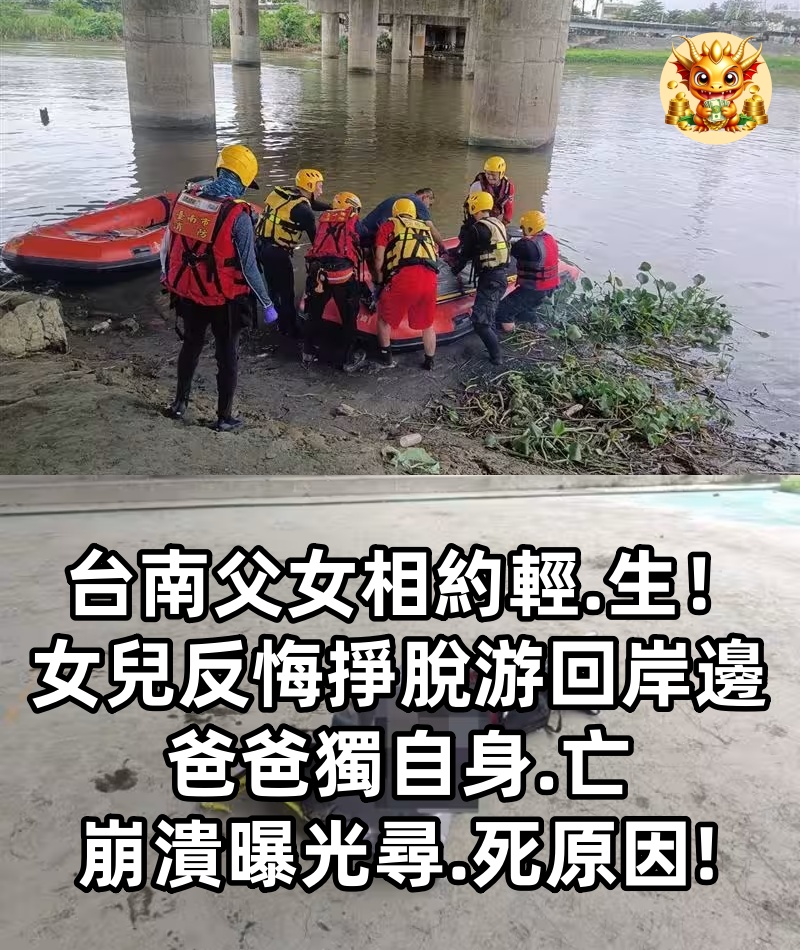 台南父女相約輕.生! 女兒反悔「掙脫游回岸邊」爸爸獨自身.亡 崩潰曝光尋.死原因! 1 / 4 台南父女相約輕生!女兒反悔「掙脫游回岸邊」爸爸獨自身亡 崩潰曝光尋死原因 台南市安南區在父親節隔天(9日)傳出一名