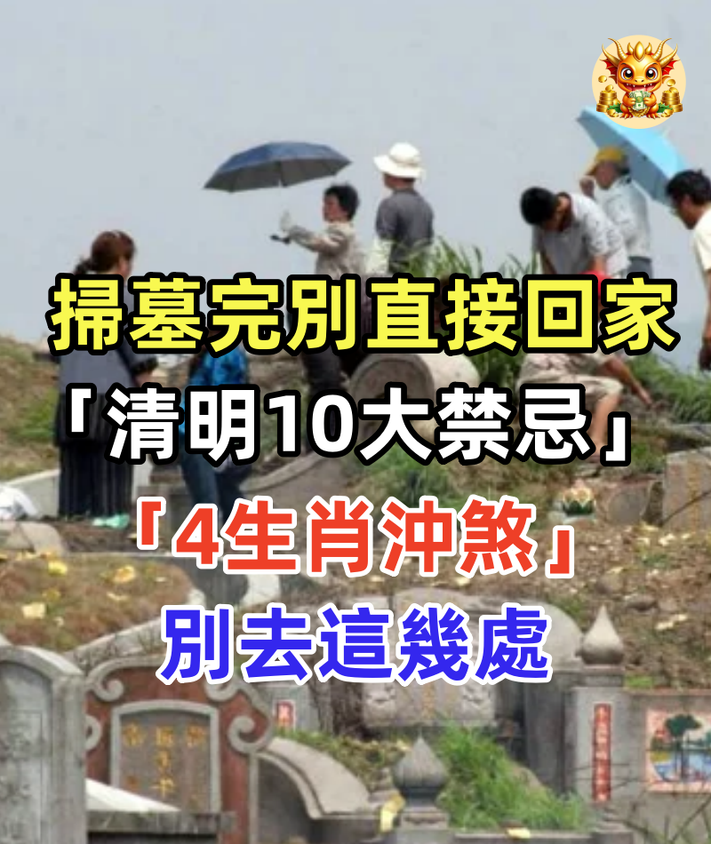 隨著清明時節即將到來,與民俗相關的話題再次成為焦點。 命理專家小孟老師特別整理出清明期間常見的10項禁忌事項, 同時提醒四個特定生肖在這段時間必須格外留意出入場所與周遭環境, 避免對自身運勢造成負面影響,造成一整年不順! 1/6 圖片來源:今