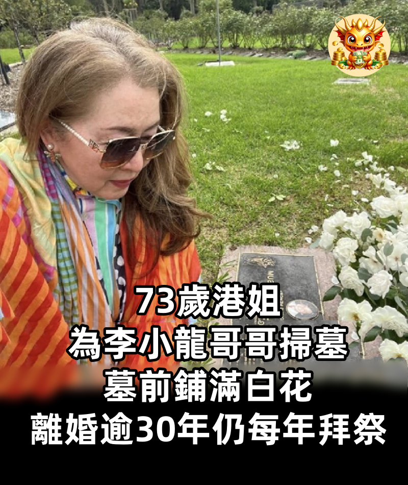 73歲港姐為李小龍哥哥掃墓,墓前鋪滿白花,離婚逾30年仍每年拜祭
