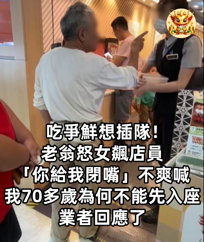 吃爭鮮想插隊!老翁怒女飆店員「你給我閉嘴」不爽喊「我70多歲為何不能先入座」業者回應了