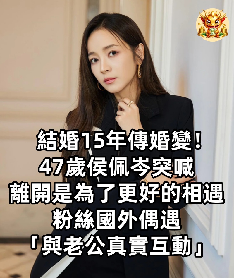 結婚15年傳婚變!47歲侯佩岑突喊「離開是為了更好的相遇」 粉絲國外偶遇「與老公真實互動」曝