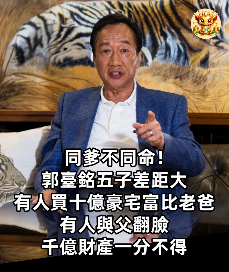 同爹不同命!郭臺銘五子差距大,有人買十億豪宅富比老爸,有人與父翻臉千億財產一分不得