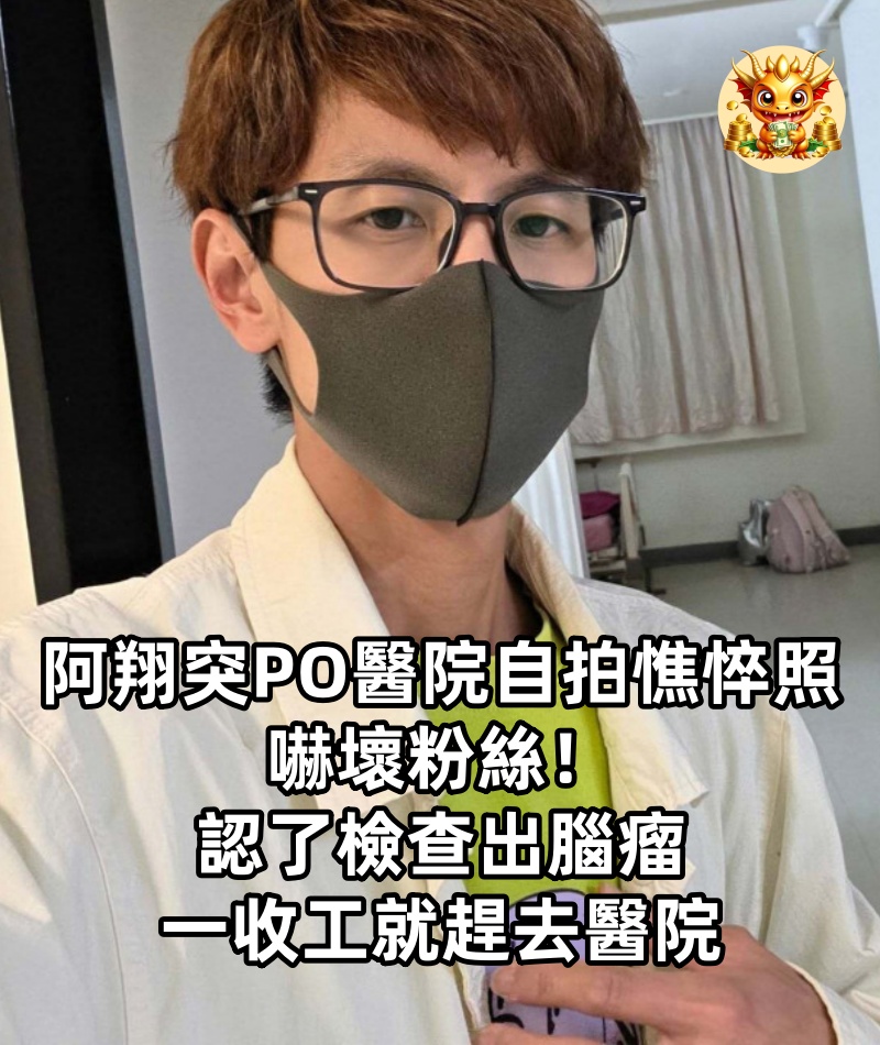 阿翔突PO「醫院自拍憔悴照」嚇壞粉絲!認了「檢查出腦瘤」:一收工就趕去醫院
