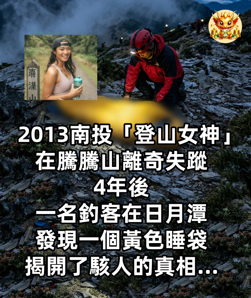 2013南投「登山女神」在騰騰山離奇失蹤,4年後,一名釣客在日月潭發現一個黃色睡袋,揭開了駭人的真相…