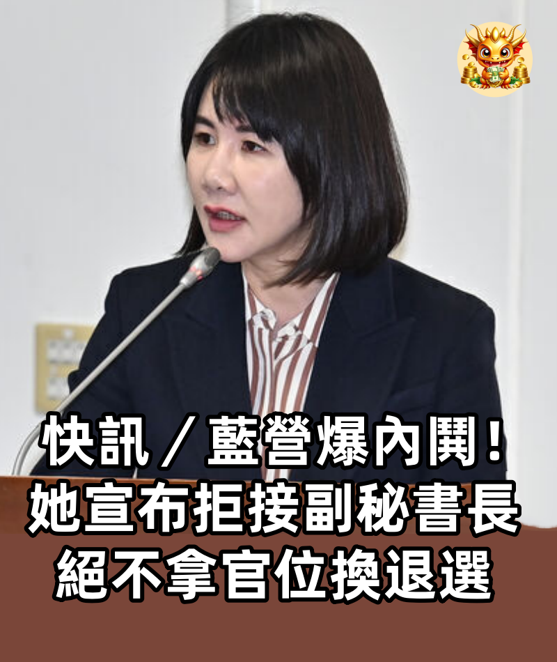 快訊/藍營爆內鬨!她宣布「拒接副秘書長」:絕不拿官位換退選