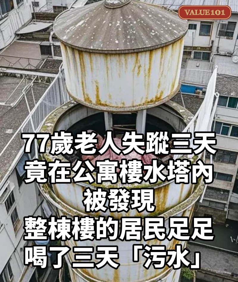77歲老人失蹤三天!竟在公寓樓水塔內被發現,整棟樓的居民足足喝了三天「污水」