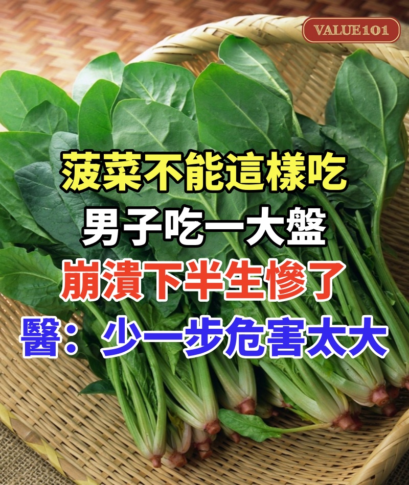 近年來隨著健康意識抬頭,大家更注重攝取蔬菜的營養,尤其是有蔬菜之王美譽的菠菜,富含防癌的植化素,包括beta-胡蘿蔔素、葉黃素、麩胱甘肽等,還有利於養骨、養眼、保養心血管,是年長者不可或缺的營養來源之一。怎料近日驚傳一名60歲男子吃菠菜毀了後半生,只因他烹飪方式「少一步」,醫生一查直搖頭:「這類人千萬要注意!」